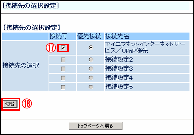 ADSLモデム-NVⅢ設定について ADSLモデム-NVⅢの設定手順は以下となります。 ■機器設定の流れ ADSLモデム-NVⅢを設定するにあたって、必要な情報が記載された「アイエフネットインターネットサービスご利用案内書」(以下では「ご利用案内書」と表記します)をお手元にご用意ください。 設定を開始する前には、機器が正しく接続されていることを確認してください。また、ADSLモデム-NVⅢのファームウェアが最新のものであることを確認してください。※最新ファームウェア情報は、NTT東日本サポート : バージョンアップ情報ページ(http://web116.jp/ced/support/version/broadband/adsl-nv3/index.html)を参照してください。 お申込みからサービス開始までの流れは以下のとおりです。 ■インターネット接続設定 1. Microsoft Internet ExplorerなどのWebブラウザを立ち上げ、アドレス欄に [http://ntt.setup/]と入力し、[Enter]キーを押してください。 2. [管理者パスワードの初期設定]画面が表示されたら、[管理者パスワードの初期設定]の[パスワード①]と[パスワード再入力②]に同じ内容を2回入力し[設定③]をクリックしてください。 パスワードは半角英数字、ハイフン(” – “)、アンダースコア(” _ “)が使用できます。 ※このパスワードは、ADSLモデムNVⅢの設定画面にアクセスするためのパスワードです。 3. [設定ウィザード]画面が表示されたら、以下のように入力してください。 ※ フレッツ・スクエアをご利用の場合はPPPoEセッションを1つ使用しますので、複数セッションご利用の場合はご注意ください。 4. [設定⑨]ボタンをクリックすると、ADSLモデムがリセットし、30秒程度で再起動します。 5. 再起動すると以下のような画面が表示されますので[OK⑩]をクリックし、「このウィンドウを閉じますか?」が表示されたら[はい⑪]をクリックしてください。 10. 再度、Webブラウザを立ち上げ、アドレスに[http://ntt.setup/]と入力し、[Enter]キーを押してください。 11. ログイン画面が表示されますので、[ユーザー名⑫]に「user」と入力し[パスワード⑬]に 2.で設定した「パスワード」を入力し、[OK⑭]ボタンをクリックしてください。 12. 左側の[基本設定]メニューから、(選択してください)の右側のした矢印▼(⑮)をクリックして、[接続先の選択設定⑯]を選択し、クリックしてください。 13. [接続先の選択設定]画面の[接続先の選択]から5.で作成した接続先の[接続可⑰]にチェックをし、[切替⑱]ボタンをクリックしてください。 14. 「接続先変更のため回線接続中は、回線が切断されます。よろしいですか?」と表示されるので、[OK]ボタンをクリックします。 15. 画面に「使用する接続先を切り替えました。」と表示されたら、インターネット接続の設定は完了です。 このままインターネットに接続する場合は、[登録]ボタンをクリックしてください。続けて、IP電話の設定を行う場合は、次のアイエフネットIP-Phone設定に進んでください。 ■アイエフネットIP-Phone設定 1. 左側の[電話設定]メニューから、(選択してください)の右側のした矢印▼(①)をクリックして、[電話基本設定②]を選択し、クリックしてください。 2. [電話基本設定]画面に以下のように入力してください。 3. [設定⑦]ボタンをクリックしてください。 4. [登録]ボタンをクリックしてください。ADSLモデム-NVⅢが30秒程度で再起動し、IP電話が利用できます。 ■設定確認 設定が完了したら、ADSLモデム-NVⅢのランプをご確認ください。下の表にあるような状態ならば、ご利用可能な状態です ランプ名称 状態 ADSL 点灯 (緑) PPP 点灯 (緑) VoIP 点灯 (緑) PWR 点灯 (緑) 制限事項 ・ 110、119などの“1”から始まる特番は自動的に一般回線を使用した発信に切り替わります。 ・ 0120、0990などの電話サービス及びPHS・ポケットベルへの発信については「0000(ゼロを4回)」を付けてダイヤルして下さい。 ・ 「発番号非通知」機能を利用した非通知発信はできません。必ず発番号通知の設定をしてください。また、”184”を付加した非通知発信もできません。 以上で、ADSLモデム-NVⅢの設定は完了です。