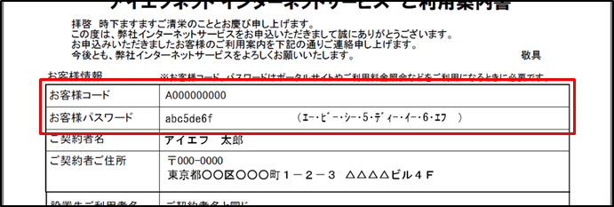 ※「お客様コード」「パスワード」はご利用案内書に記載されております。