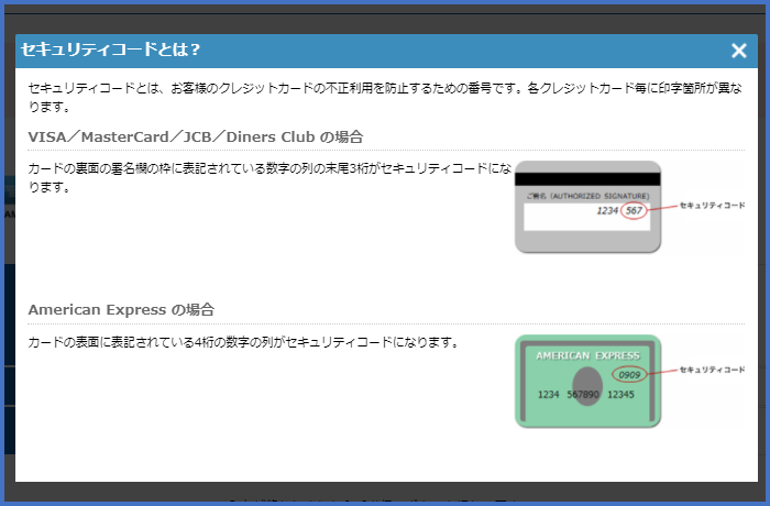 ※「セキュリティコード」の隣【?】をクリックすると下図のような入力のヒントが出ます。