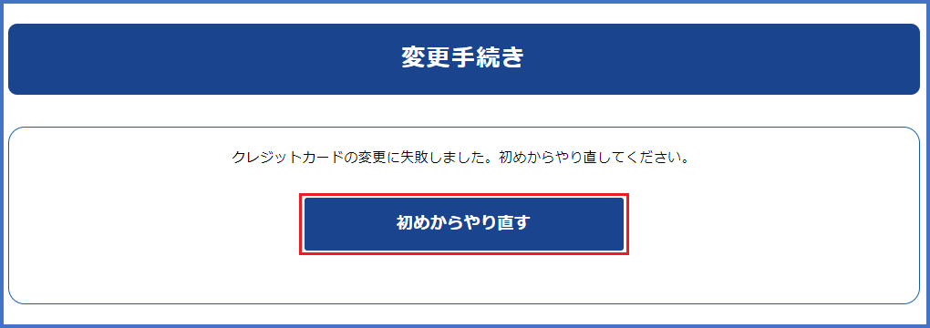 ※タイムアウト等何かしらの理由により登録が出来なかった場合「クレジットカードの変更に失敗しました。」が出ます。